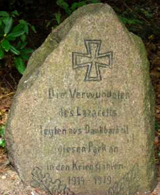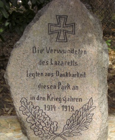 Der Gedenkstein für die im ersten Weltkrieg im Haus gepflegten Verletzten wurde beschlussgemäß restauriert und dabei angehoben und erhielt eine würdige Gestaltungsumrahmung.